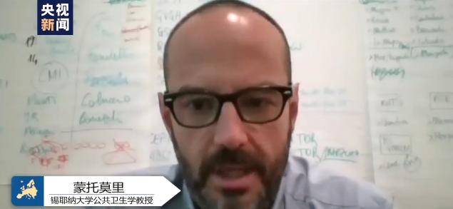 △米兰国家肿瘤研究所等机构论文《意大利疫情大流行前意外检测到的新冠病毒抗体》论文的主要作者之一、锡耶纳大学公共卫生学教授蒙托莫里接受了总台记者的专访。