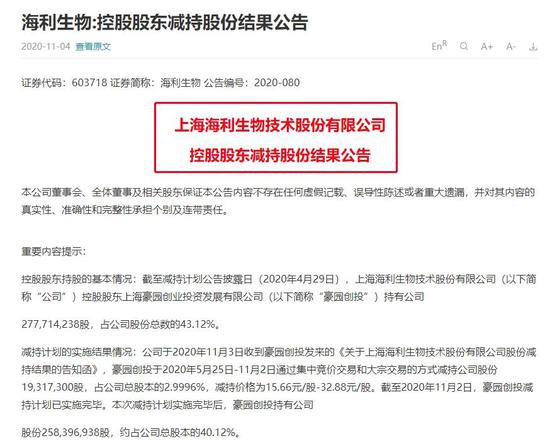 就在几天前,海利生物公告了,实控人张海明控制的上海豪园创投进行了减持。