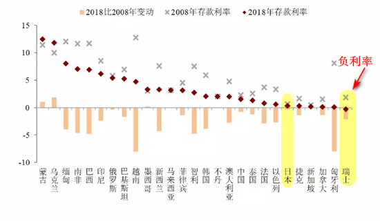 世界银行统计的264个国家和地区里,瑞士的存款利率就是负值。