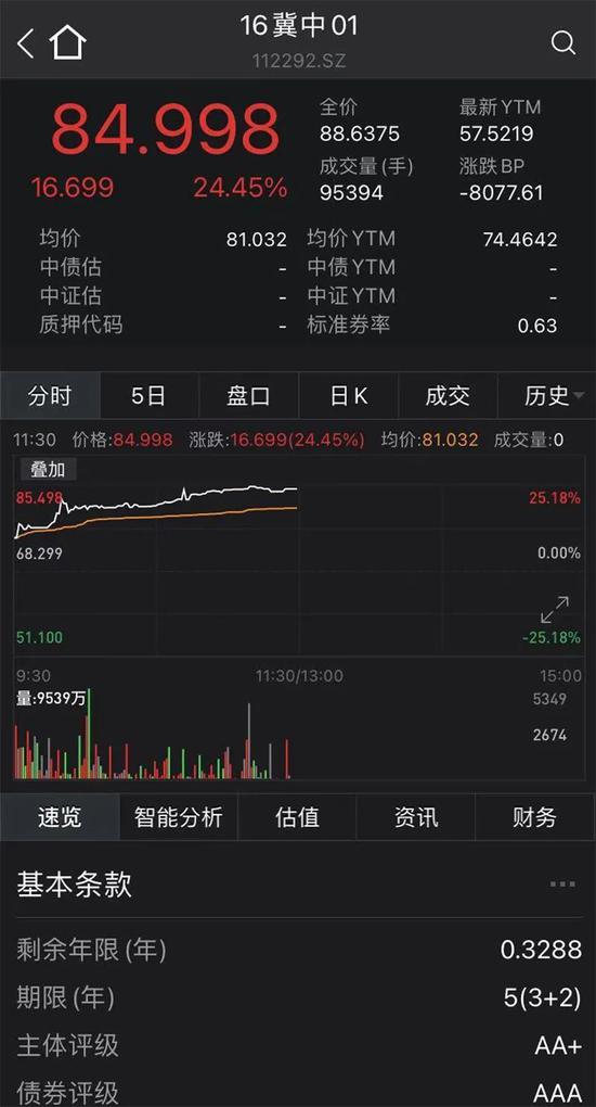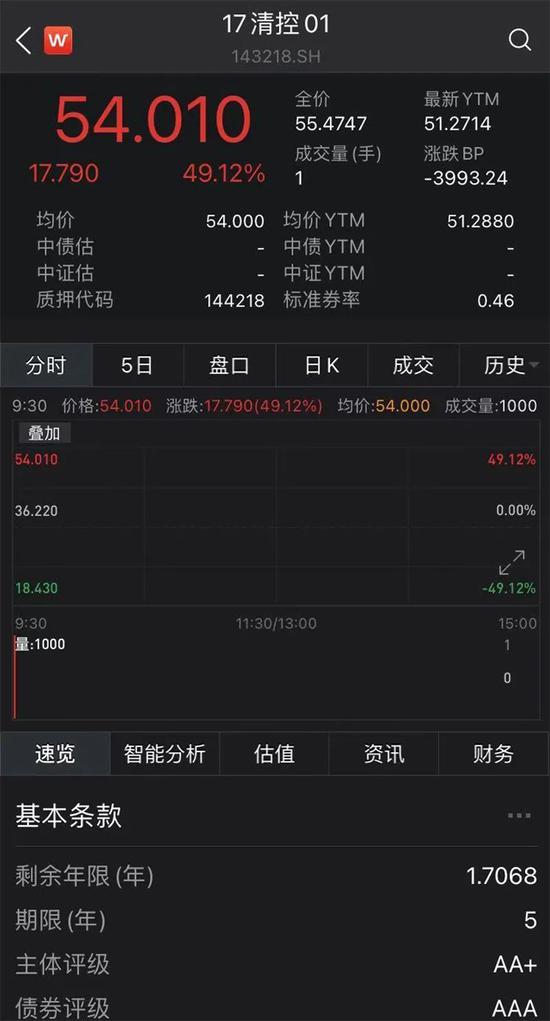 多只此前连续下挫的信用债也明显反弹:截至中午收盘,清华控股存续债“16清控02”涨逾41%,“17清控01”涨近50%,均盘中临时停牌;