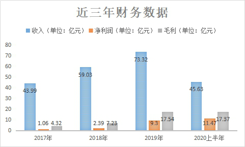 财务方面,2017-2019年及截至2020上半年,恒大物业的收入分别为43.99亿、59.03亿、73.32亿和45.63亿元人民币;净利润分别为1.06亿、2.39亿、9.3亿和11.47亿元人民币。毛利分别为4.32亿、7.23亿、17.54亿和17.37亿元人民币,其中,2017年至2019年的年复合增长率为101.4%,远高于中国物业服务百强企业平均增速。
