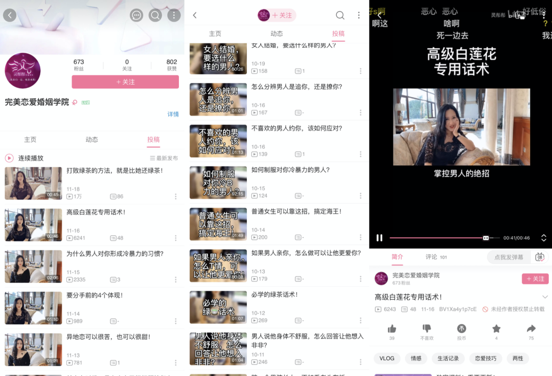 继去年年底男性pua平台“浪迹情感”被曝光后,今年以来,一些专注女版pua的培训机构也逐渐浮出水面。此类机构往往通过系统的方式教导女性,来对男性实现情感操控的目的。