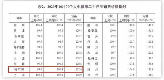 首先是涨不动的房价。根据数据统计,今年10月份,哈尔滨新建商品住宅销售价格环比上涨0.1%,同比上涨2.8%,在70个大中城市中,同比涨幅排名第48位;10月份哈市二手房价格指数环比下跌0.4%,同比上涨0.4%,环比实现5连跌。