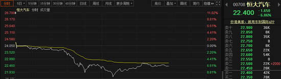 受监管消息影响,港股恒大汽车早盘股价出现跳水,盘中跌幅一度超10%,截至发稿,跌幅收窄至7%以下。目前,其发布的6款新能源汽车均未量产。