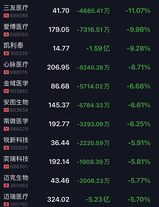 11月25日,医疗板块惨遭血洗,医疗ETF重挫2.85%。个股层面,心脉医疗、爱博医疗跌幅居前,凯利泰、心脉医疗等跌逾8%,其余个股走势也较为惨烈。