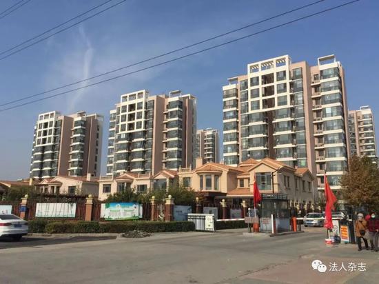 金祥园小区是西青区大寺镇王村村民居住的小区,记者在此看到,位于小区一侧的“金祥园别墅区”在秋日阳光下格外醒目,与村民居住的高层楼房形成强烈反差。该别墅区(均为二层)自东向西一字排开,大约有10栋,其中最西边的2栋贴着封条。