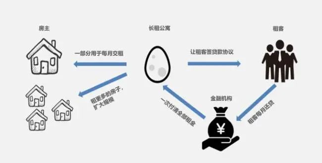 “租金贷”指的是长租公寓运营商与银行合作,引导租客办理贷款。银行将贷款总额一次性汇至运营商账户,租客则每月向银行分期还贷。