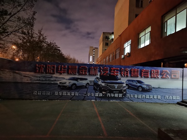 记者从现场看到,几辆中华车型在沈阳华晨金杯汽车销售有限公司的外面陈列着,门口竖立着一块很大的广告牌,上面写着“华晨厂家直营”几个大字。而沈阳华晨金杯汽车销售有限公司也是通过广告牌的形式立在门外,其经营范围为整车批发零售、二手车置换、汽车租赁、汽车零部件批发零售、代办保险。