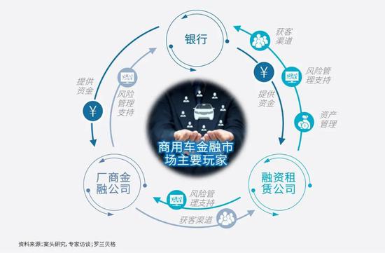 与乘用车金融市场相似,商业银行、厂商金融和融资租赁同样是商用车市场的三大金融服务提供主体。但商用车新车渠道更加复杂且不透明,因此需要汽车金融企业有更强的市场洞察和渠道开拓及运营能力。