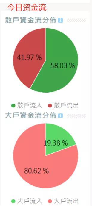 资金流分布图显示,今天散户资金仍呈小规模流入,大户资金已火速出逃。