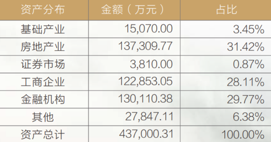 据公开信息,2019年万向信托营收达到14.15亿元,同比增幅39%。全年净利润为6.98亿元,同比增幅38%。截至2019年末,万向信托总资产达到43.7亿元,净资产36.37亿元。从自营业务资产分布来看,房地产资产占比最高,达31.42%。