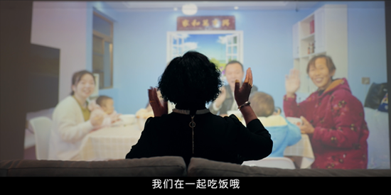 郭翠兰的家人们在乔迁的新居里做了一桌丰盛的晚餐,并招呼银幕前的她说:“我们在一起吃饭哦!”于是她终于吃上了团圆的“年夜饭”。