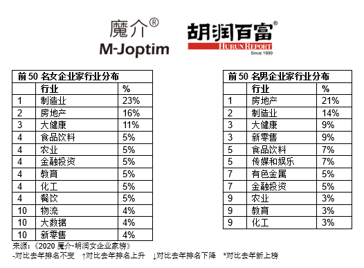 先进制造第一次超过房地产,成为上榜女企业家最主要财富来源