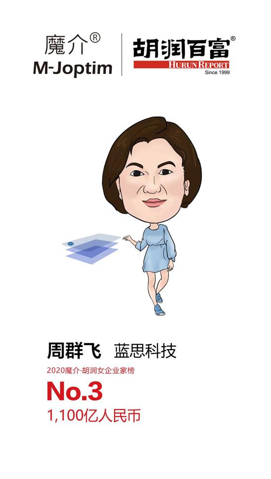 周群飞 50岁的周群飞财富上涨255%,是上榜女企业家中涨幅最快的,以1100亿元排名第三。周群飞、郑俊龙夫妇位列《2020衡昌烧坊·胡润百富榜》前30名。随着5G商业化的持续推进,带领相关产业大好发展,蓝思科技也因此一改前两年因贸易摩擦造成的颓势。今年上半年盈利19亿元,同比增加1322%。市值最高已突破1500亿元。