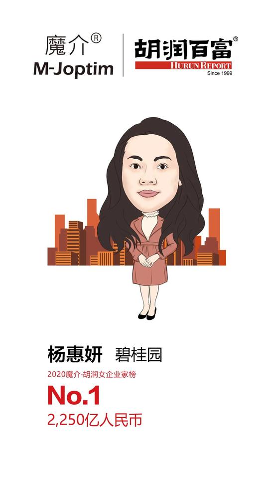 杨惠妍 39岁的杨惠妍财富上涨29%,以2250亿元第八次成为中国女首富,位列《2020 衡昌烧坊·胡润百富榜》第六名。今年上半年,碧桂园实现总收入1850亿元,同比下降8%。