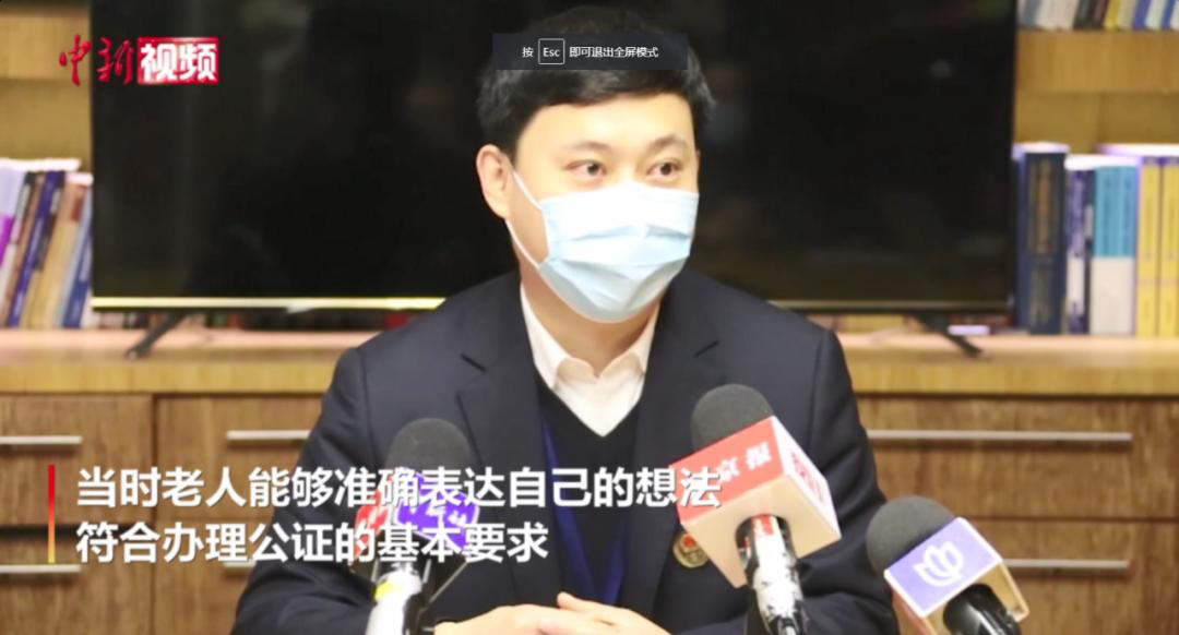 11月26日,上海普陀公证处公开作出情况说明,称公证员与当事人在进行多次交谈,反复确认当事人的意愿后,才办理了公证。如果老人亲属对此提出异议,可以通过正常的法律程序进行处理。