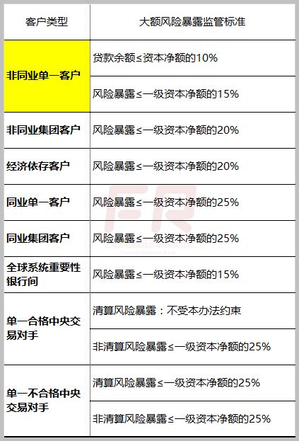 主要衡量一家金融机构对另外一家银行的风险暴露高低,限制资产端同业集中度风险。