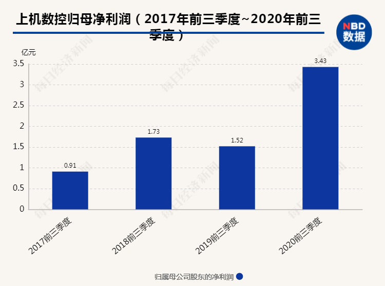 据证券时报报道,本次销售合同若能按预计金额确认收入,每年贡献的营收将超过上机数控2019年度营收的2倍,并超过今年前三季度营收水平。数据显示,上机数控2019年度营业收入为8亿元,2020年前三季度营业收入为19亿元。