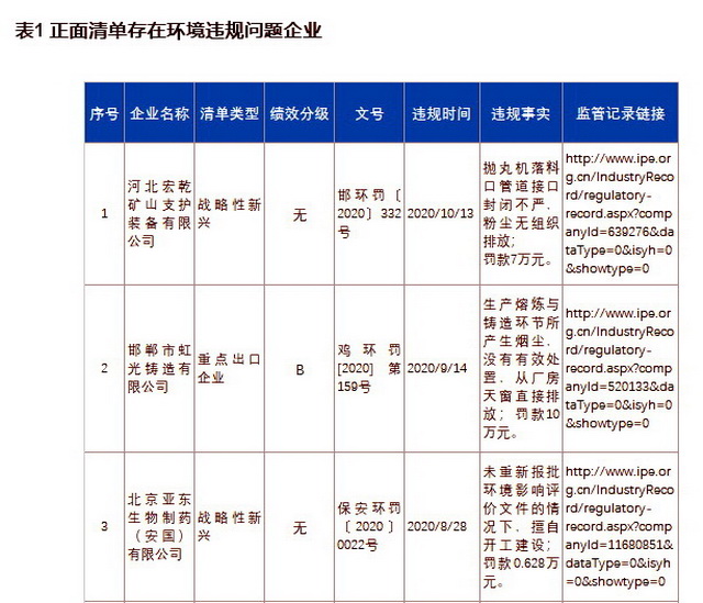 不过,有环保组织发现,在河北省公布的这些可以享受“特殊待遇”的企业中,今年,有20家企业因存在环境违规问题被环境部门处罚过。