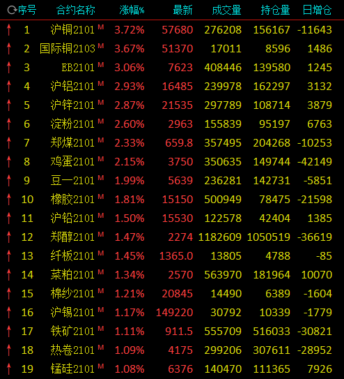 国贸期货分析指出,宏观层面,美国大选不确定性持续下降,市场对美国新一轮刺激方案预期抬升,而耶伦或担任美国财政部长消息进一步刺激市场风险偏好,有色板块大幅上行;欧元区服务业受重创,部分国家释放即将开启新一轮刺激政策的信号,全球货币流动性有望保持宽裕;此外,疫苗消息频频传来利好,未来市场通胀预期抬升,近期有色板块持续走高;基本面方面,铜矿现货TC低位运行,矿端偏紧仍未缓解。而国内下游消费表现尚可,铜库存持续走低,对铜价产生支撑。总体来看,市场静待美国大选后新一轮刺激方案,且疫苗传来利好抬升未来通胀预期,继续看好铜等有色板块价格表现。
