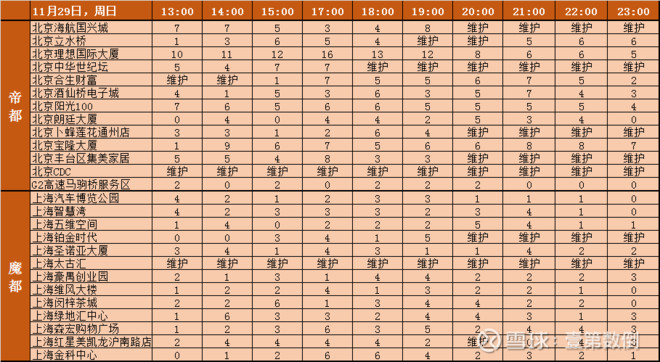 那么目前真实情况如何呢?带着这个疑问,使用蔚来车主APP对北京上海两地的换电排队情况进行统计,以后会逐步更新(表格中的数字表示排队车主数量):