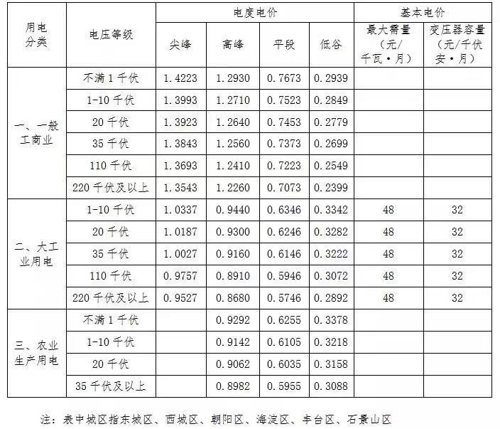 北京电网输配电价表