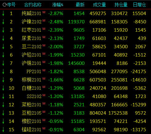 热点栏目12月1日,国内期市早盘跌多涨少,动力煤涨逾3%,焦煤涨近3%,沪银涨逾2%;有色分化,沪铝涨逾1%,沪镍跌逾2%,沪铅、沪锡跌近2%;农产品飘绿,红枣、豆二跌逾2%,棕榈油、白糖跌逾1%。