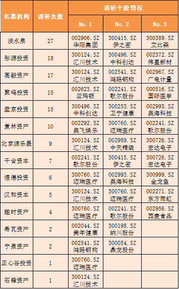 这部分百亿私募有三成在11月调研私募最多的对象都是汇川技术。其次受绩优百亿私募关注的个股是医药行业“浓眉大眼”的迈瑞医疗、工业机械领域的伊之密、近期大跌的苹果产业链个股歌尔股份。