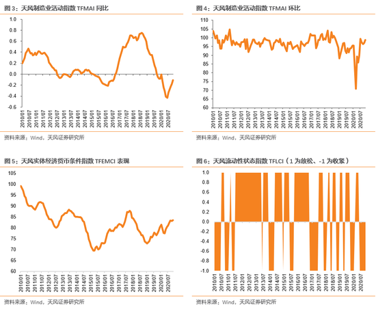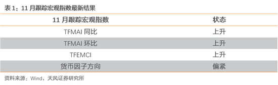 最新一期指数方向如下表所示。最新一期数据中,反应经济周期的TFMAI指数同比上升,环比上升,而反应金融条件的TFEMCI有所上升。