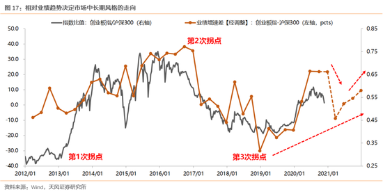 第三,中长期的风格趋势是由传统经济和新兴产业盈利预期的相对强弱决定,而盈利的相对强弱,又与信用扩张(政策支持、产业发展)的方向相吻合。以往出现过三个拐点,分别是:2013年(由传统行业转成长行业)、2016年(由成长行业转传统行业)、2019年(由传统行业转成长行业),当前经济转型方向不变,成长趋势性占优。
