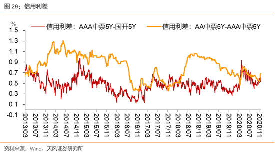 其次,需要关注流动性状态。从目前情况来看,宏观基本面并不完全支持整个短端利率进一步上行,只要央行能够通过精准投放维持短端利率相对稳定,那么流动性整体仍能保持紧平衡,在这样的流动性环境下信用格局不会明显恶化,等信用事件冲击基本消退后信用利差估计仍能维持相对偏低的位置,因为流动性溢价是信用溢价的重要组成部分。