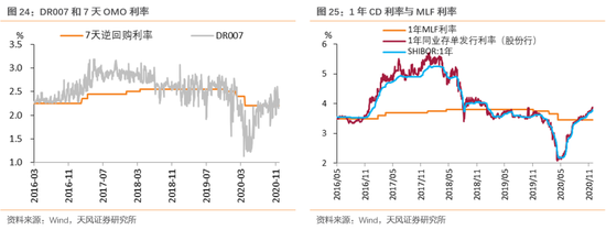 结合三季度报告的表述,我们认为在年底12月和春节前1月可能出现季节性流动性紧张的时间段,央行仍会精准投放MLF和OMO进行对冲,流动性整体保持紧平衡而不会简单收紧,DR007继续围绕7天OMO利率波动,CD利率逐步上升的势头可能会有所变化。