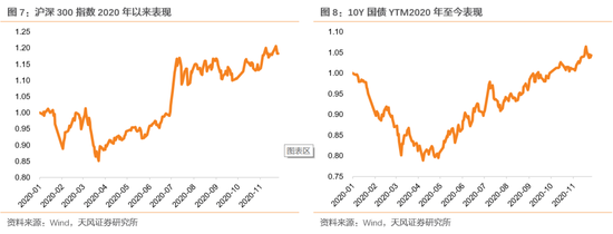 截至2020年11月26日,股票指数单月涨幅达到4.59%;M2增速同比上升,社会融资规模同比多增,存款同比多减,10年期国债收益率单月上行8.65bps。