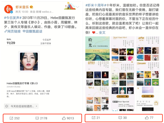 形成鲜明对比的是,两年前虾米音乐庆祝十岁生日的微博评论数,不及这条微博的零头。