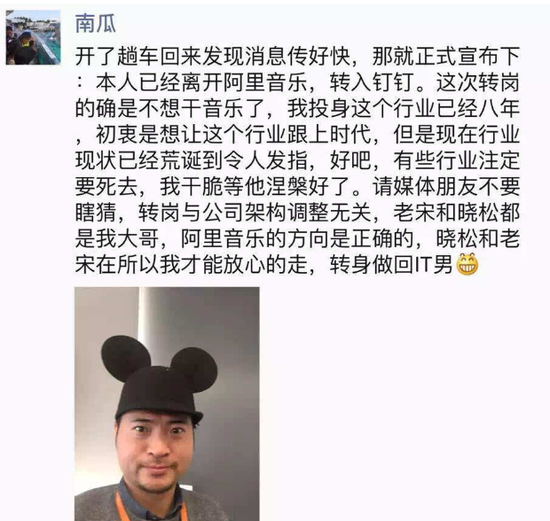 他说彻底不想干音乐了:“初衷是想让这个行业跟上时代,但是现在行业现状已经荒诞到令人发指。”