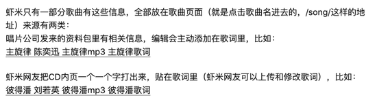 他还是当年虾米歌词组的组长,带领1万多人补充歌词,也协助虾米工作人员督查侵权音频。