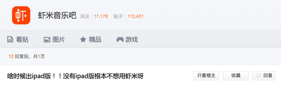 但到了2017年底,iPad都出到第五代了,虾米还没有iPad版本。