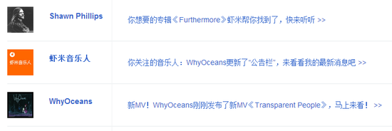 而在虾米上已经能找到极小众的专辑,即使一时搜不到,点击订阅,不久后虾米就会给你个惊喜。