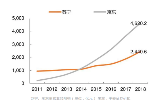 在传统零售摸爬滚打20年后,2010年2月,苏宁易购正式对外发布上线,苏宁全面推进电子商务的发展。同一年,已进军电商6年的刘强东,在拿到高瓴张磊3亿美金后,已开始建设后来被人称道的自建物流体系。