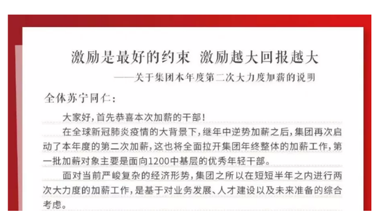 总体来看,购回债券并不是苏宁增强市场信心的唯一举措。11月20日,为了稳定内部,苏宁易购宣布本年度第二次大幅涨薪,受到市场广泛关注。分析人士认为,苏宁易购年内两度加薪,展示了其近期业务发展的向好,以及较为雄厚的资金实力。