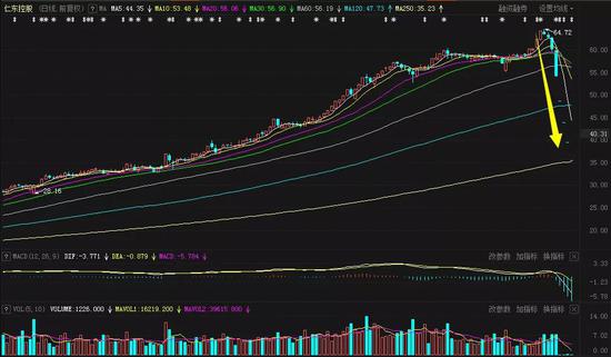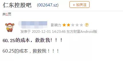 例如,仁东控股(002647,SZ)自11月20日创出历史高点64.72元/股回落之后,至今已是连续第5个跌停,连续第4个一字跌停,股价已经跌到35.53元/股,转眼缩水45%。被深套的股民已经发出灵魂呼唤: