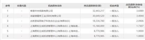 今年一季度“香港中央结算有限公司”上榜,每个季度公布的数据显示都在增持,最后力压鸿福锦精密工业(深圳)有限公司成为“一哥”,三季度持股末持股数量3244万股。
