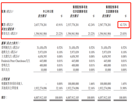 配售事项完成后,公司控股股东持股从43.91%减少为42.72%,本次筹资47亿港元。