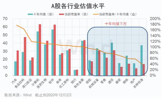 截止周三收盘,有8个行业最新市盈率处于十年均值下方,分别为农林牧渔、房地产、钢铁、煤炭、通信、零售、机械设备和保险。