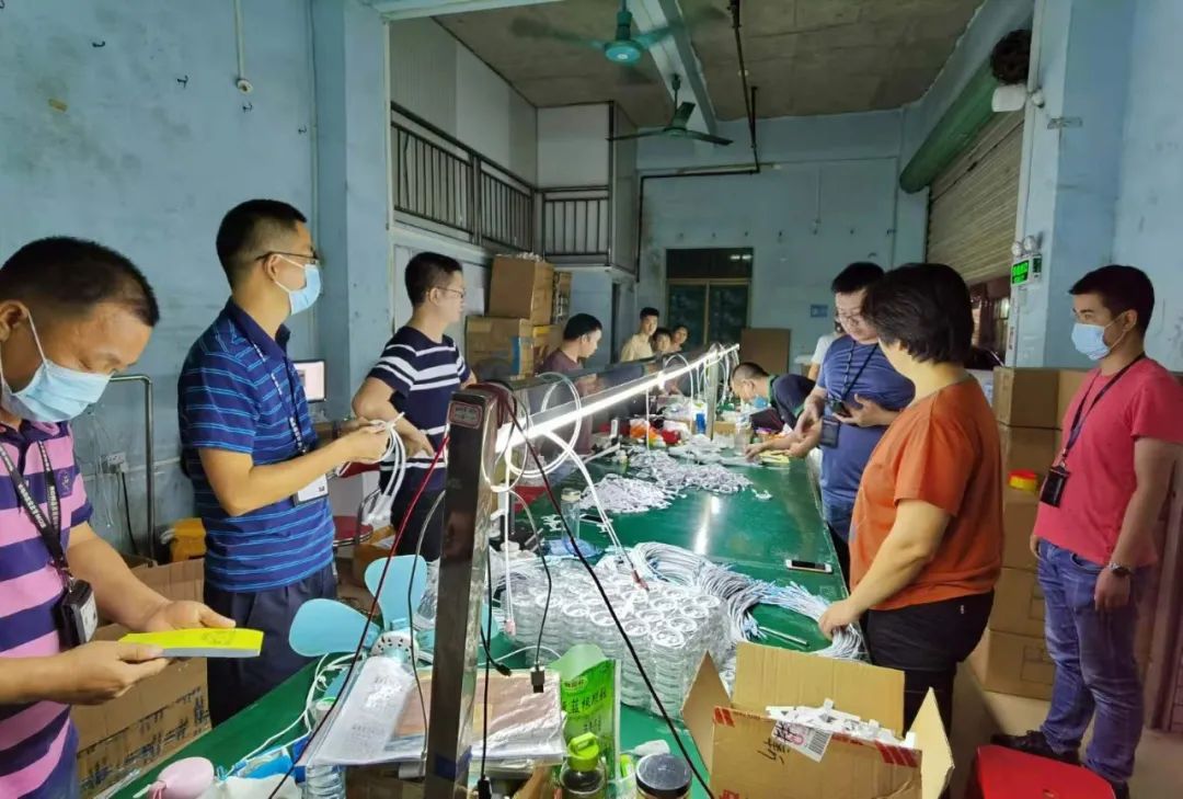 2020年11月19日晚,根据权利人投诉,深圳市市场监管局光明监管局联合公安部门对位于玉塘街道、凤凰街道、新湖街道的三处涉嫌生产假冒苹果手机数据线及TWS耳机的企业进行了突击检查。
