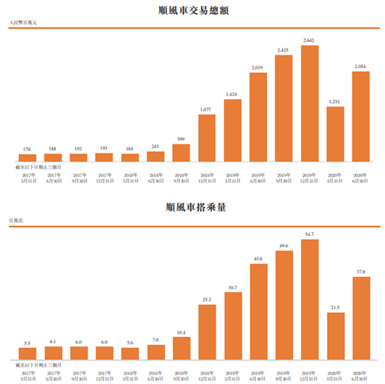 自公司成立至2020年6月30日止,公司为约36.7百万名顺风车乘客提供服务。从2017年、2018年及2019年以及截至2020年6月30日止六个月,公司的顺风车平台分别产生约23.6百万次、48.2百万次、178.5百万次及59.3百万次搭乘,同期交易总额分别约为人民币7亿元、人民币19亿元、人民币85亿元及人民币33亿元。