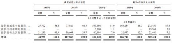 2017年、2018年及2019年,公司从顺风车平台产生的收益分别为人民币27.7百万元、人民币77.9百万元及人民币533.4百万元,分别占公司同期总收益的56.6%、66.3%及91.9%。截至2019年6月30日及2020年6月30日止六个月,公司从顺风车平台产生的收益分别为人民币164.3百万元及人民币272.5百万元,分别占公司同期总收益的88.0%及87.8%。
