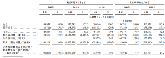 2017年、2018年及2019年,公司的收益分别为人民币48.9百万元、人民币117.6百万元及人民币580.6百万元,截至2019年半年报及2020年半年报,公司的收益分别为人民币186.7百万元及人民币310.5百万元。