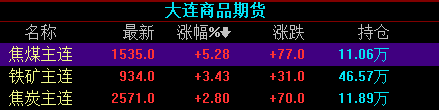 同时,黑色系持续躁动,国内焦煤期货主力合约涨5.28%,涨至1535元/吨,创2017年8月以来新高。动力煤期货主力合约涨4.02%,涨至699.2元/吨,收于纪录高位。
