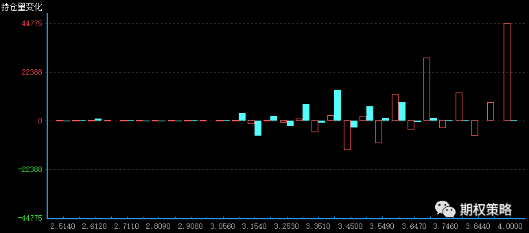 从12月持仓变化来看,认购在最虚值4000处增仓最大,认沽在3400处增仓最大,50ETF支撑压力均有上移迹象。